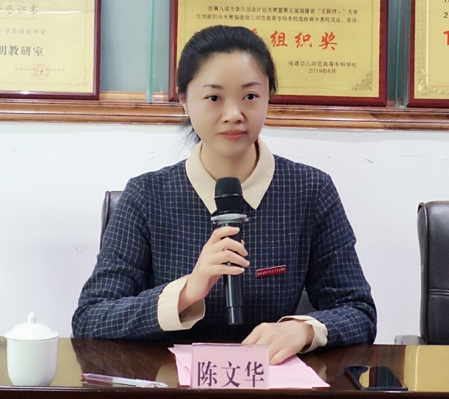 陈文华,中共党员,英语语言文学博士,教授,福建省高等学校新世纪优秀人才。现任外语教育学院院长,校学术委员会委员,福建省职业教育英语教科研组副组长,福建省高等职业院校外语教学指导委员会委员,全国小学英语教师资格证考试面试官。