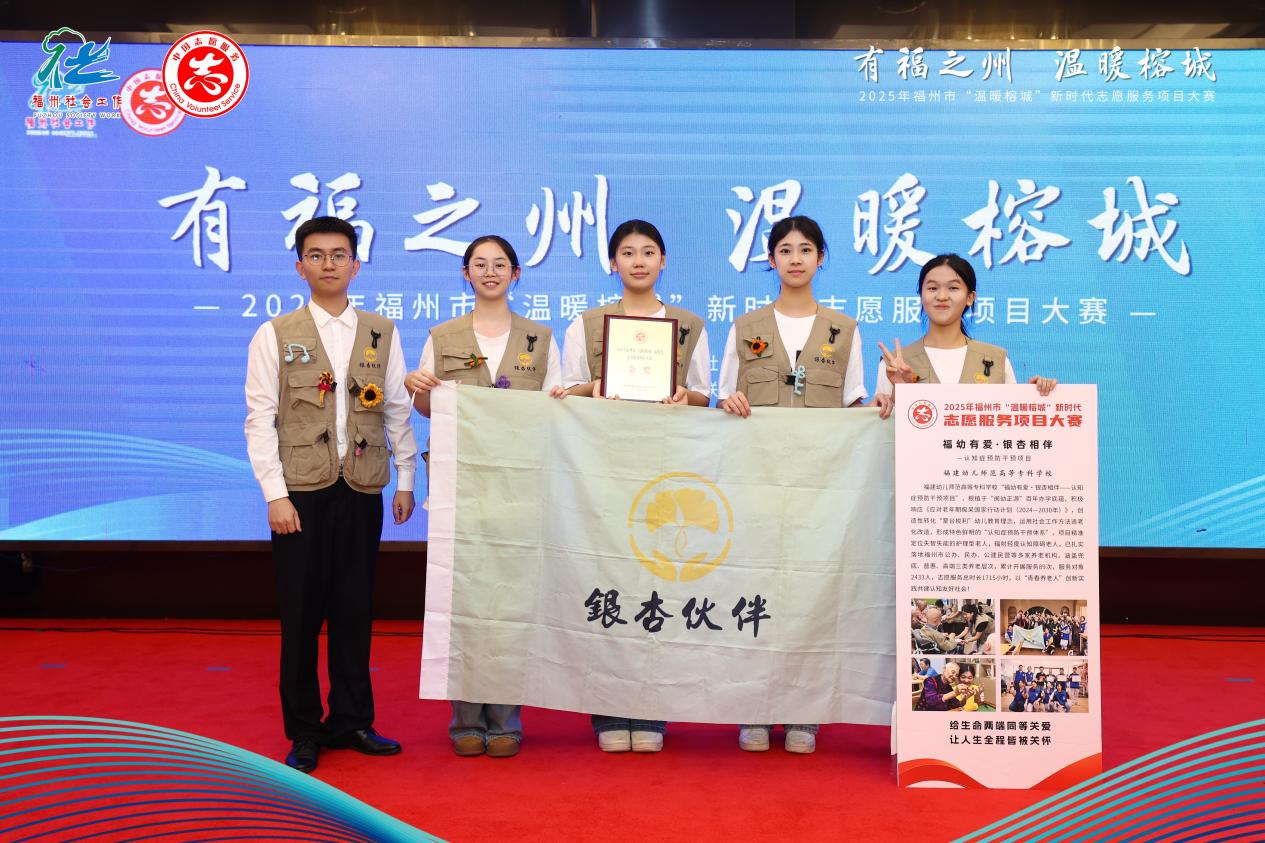 7月5日,由福州市委社会工作部主办的2025年“温暖榕城”新时代志愿服务项目大赛决赛在福州大学城落下帷幕。经过三个月的多轮选拔,由校银杏伙伴社团指导老师,人文科学学院何洪越老师带领的“福幼有爱·银杏相伴——认知症预防干预项目”从全市271个申报项目中脱颖而出,荣获金奖。