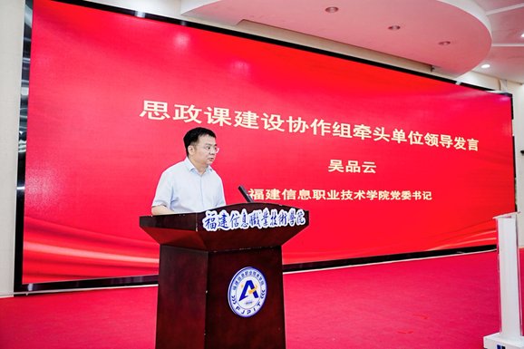 福建信息职业技术学院党委书记吴品云作为思政课建设协作组牵头单位领导发言,提出学校将与各成员单位一道,聚焦思政课协同联动,完善一体化育人机制;聚焦思政课质量提升,锻造一体化育人队伍;聚焦思政课职教特色,构建一体化课程体系;聚焦思政课“福建样板”,把协作组打造成工作规范、运转有效、协作紧密、特色鲜明、示范引领的职业院校思政课建设协作平台,推动职业院校思政课建设迈上新台阶。