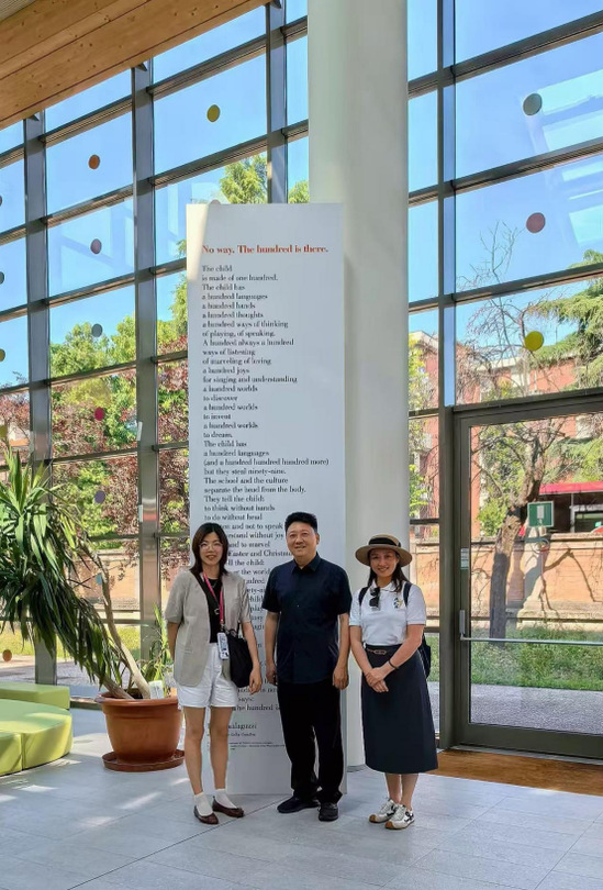 会议期间三位教师参访了意大利马拉古奇国际中心开展学术交流。聆听了“瑞吉欧儿童”中心主席克劳迪娅·朱迪奇(Claudia Giudici)的讲座,观摩“儿童的一百种语言”主题展览和光影工作坊。作为世界知名的学前教育课程模式,瑞吉欧教育中,环境是“第三教师”,儿童在师幼、家园和社区共同缔造的有意义的教育环境中学习,发展其主体性,去迎接和创造他们发展的无限可能。