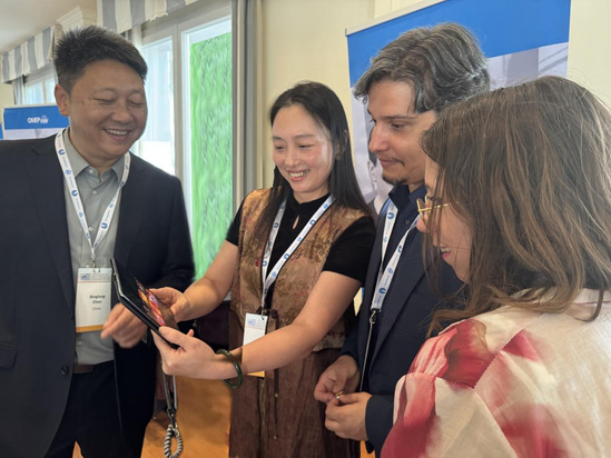 颜铭锋教授向意大利OMEP主席马特奥·科尔布奇(Matteo Corbucci)介绍中国线狮工作坊