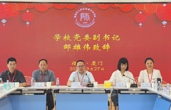 随后,邹雄伟代表学校致辞。他首先对各位校友的到来表示热烈欢迎与衷心感谢,详细介绍了学校近年发展动态,重点阐述了学校与厦门深化合作的显著成效,同时高度肯定了厦门校友的卓越风采。