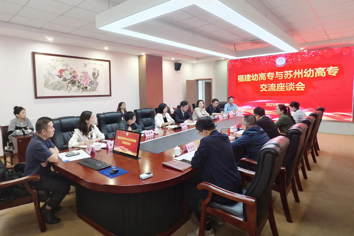 座谈会上,林伟川对苏州幼高专同仁的到来表示热烈欢迎,并介绍了学校的基本情况。随后,与会人员共同观看了我校校情专题片,直观了解学校历史沿革、办学特色。双方深度聚焦专业建设、就业服务、转型发展等议题开展交流研讨。殷海芳表示,此次交流为两校深化合作奠定了坚实基础,期待未来与福建幼高专携手服务学前教育高质量发展。