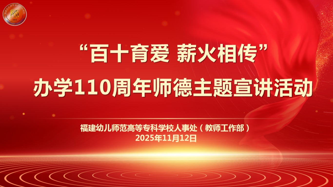 为深化师德师风建设,传承先辈教育工作者的崇高精神与育人初心,11月12日下午,我校在仓山校区礼堂举行“百十育爱 薪火相传”办学110周年师德主题宣讲活动,全体教职工共同聆听了学校质量监控与评估中心主任陈忠辉教授作的《黄世明大先生——从福州协和幼稚师范到中国幼教本土化的实践者》专题讲座。