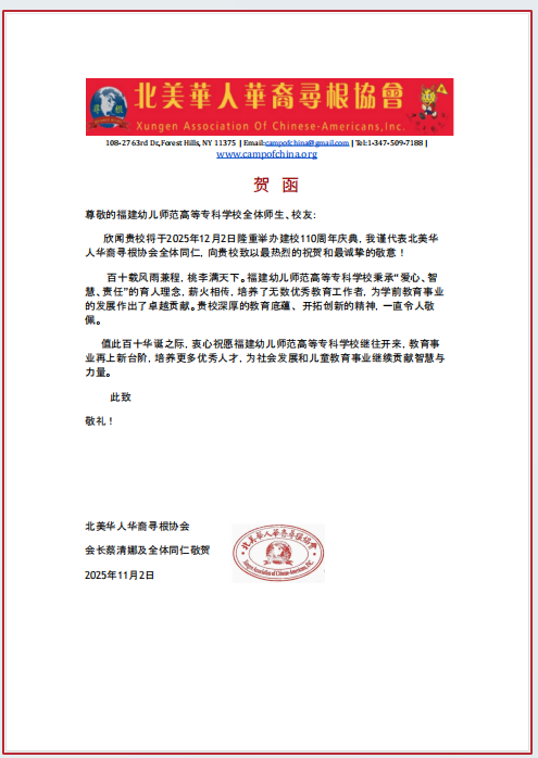 北美华人华裔寻根协会贺信
