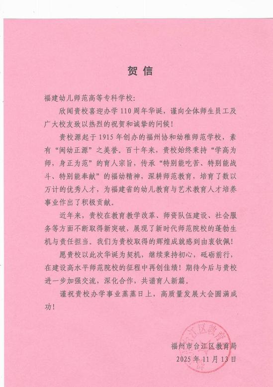 福州市台江区教育局贺信