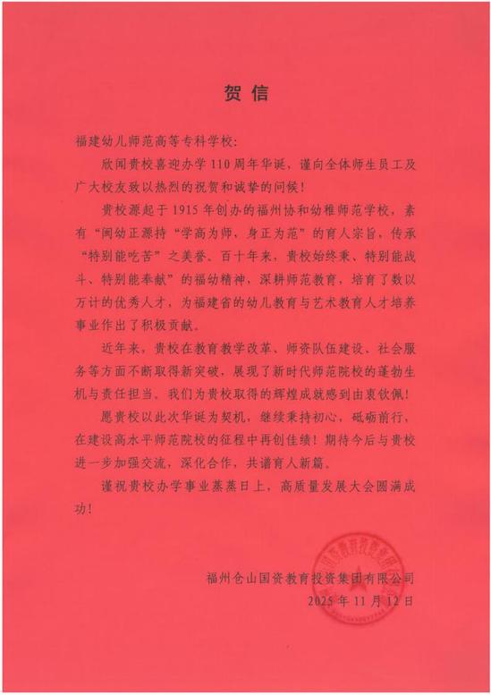 福州仓山国资教育投资集团有限公司贺信