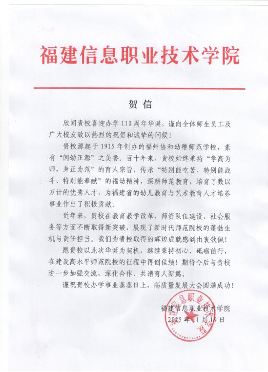 福建信息职业技术学院贺信