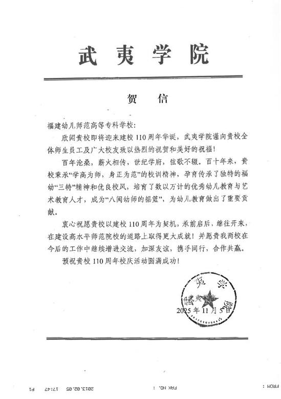 武夷学院贺信