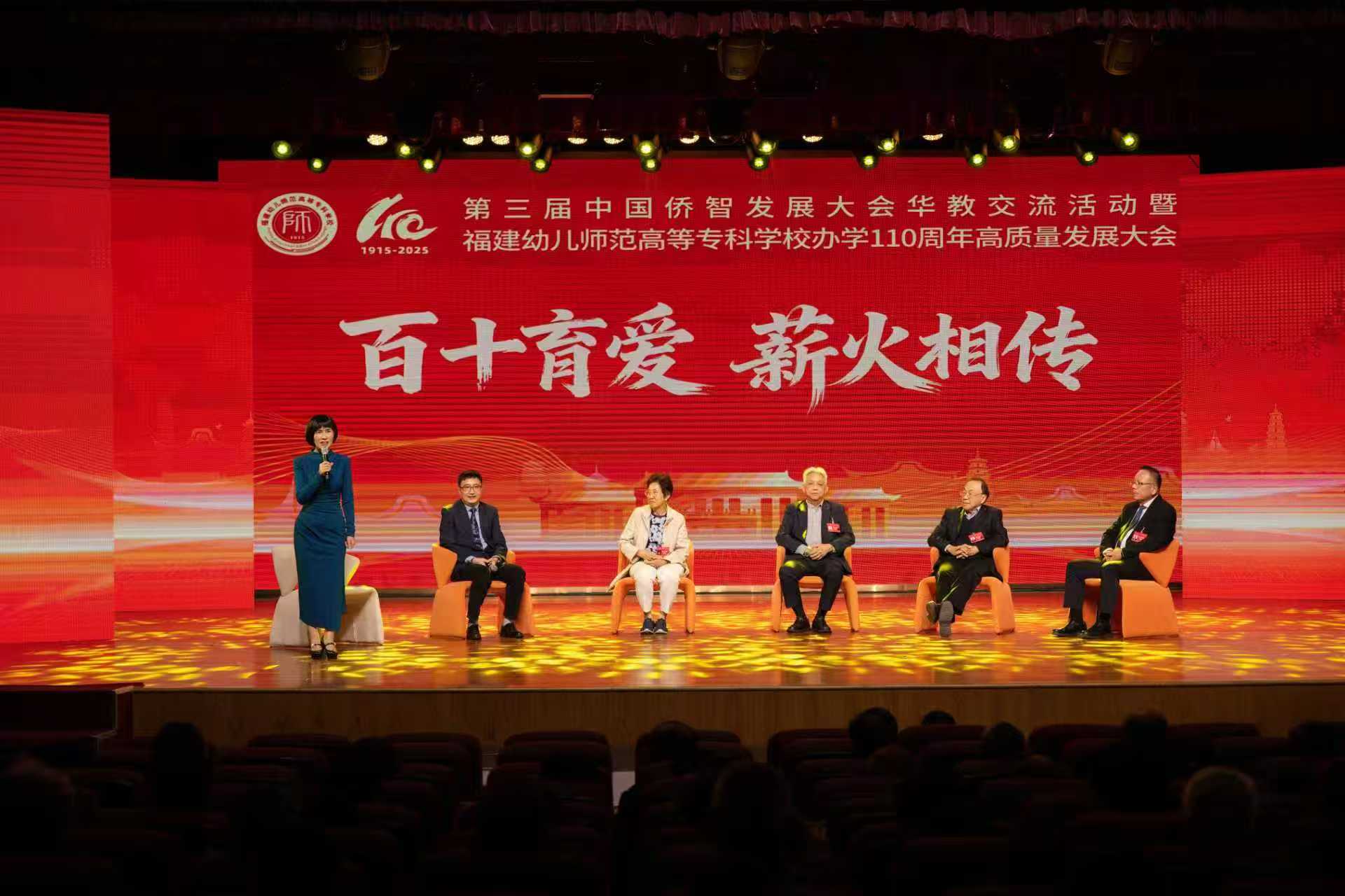 2025年12月2日,第三届中国侨智发展大会华教交流活动暨福建幼儿师范高等专科学校办学110周年高质量发展大会在我校仓山校区隆重举行。大会以“百十育爱,薪火相传”为主题,通过专题展演、校友互动、华教对话与战略签约等系列活动,全面展现学校百十年办学积淀与新时代使命担当。