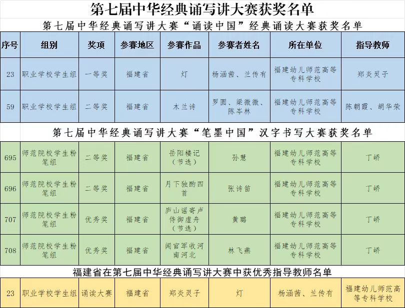 一笔一划书写经典韵味,一字一句传诵文化华章。此次大赛的7项国家级比赛奖项,是福建幼儿师范高等专科学校传统文化育人工作的一次生动检验。学校将以此为新起点,持续深化经典文化与教育教学的融合创新,让中华优秀传统文化在校园中落地生根、生生不息,为培育兼具文化素养与专业能力的师范人才筑牢文化根基。