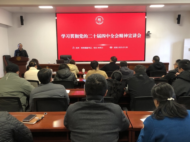 为深入学习贯彻党的二十届四中全会精神,引导学校师生深刻领会其核心要义与实践要求,自觉将思想与行动统一到党中央决策部署上来,1月8日下午,学校举办学习贯彻党的二十届四中全会精神宣讲会,由全省教育系统宣讲团成员、校党委副书记、校长林伟川作专题宣讲报告。