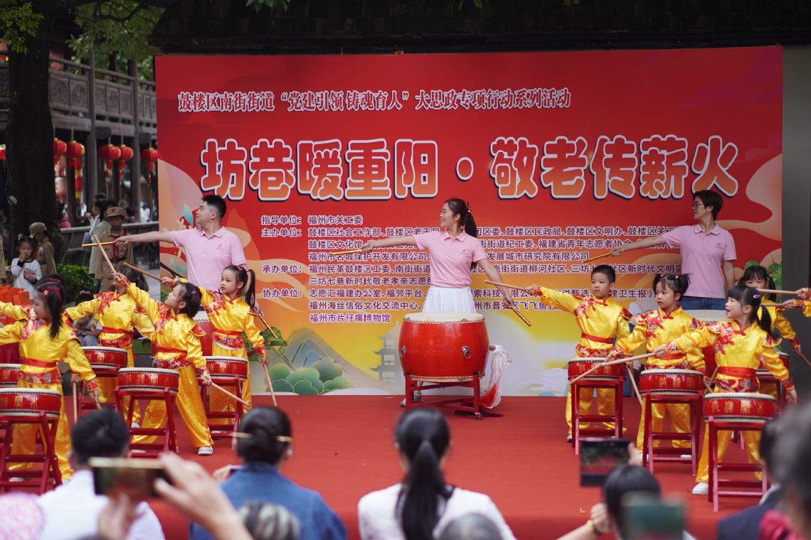 重阳节前夕,福幼二园党员、团员老师代表参加了由福州市关工委指导,鼓楼区关工委、鼓楼团区委、鼓楼区慈善总会、南街街道党工委、办事处等主办开展的“坊巷暖重阳,敬老传薪火”活动。老师和孩子们的精彩开场鼓舞节目,获得现场阵阵掌声。
