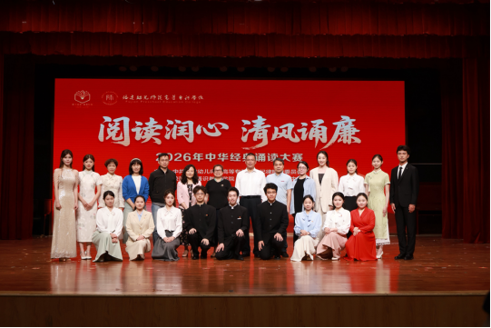 春风送暖,雅韵流芳。2026年4月15日下午,福建幼儿师范高等专科学校“阅读润心 清风诵廉”2026中华经典诵读大赛总决赛在仓山校区礼堂成功举办。校党委委员、纪委书记谢翠红,校党委委员、副校长谢福仁、马克思主义学院、通识教育学院院长伊文婷、校团委书记胡华荣出席活动,与师生代表一同观看了比赛。