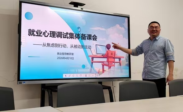 为提升就业指导课程实效,助力毕业生平稳求职,2026年4月17日,我院就业指导教研室开展集体备课活动。陈锋华老师以 “就业心理调试 —— 从焦虑到行动,从被动到主动” 为主题,分享求职焦虑疏导方法与行动转化策略,引导学生积极应对就业压力。蔡珊珊老师围绕 “AI 赋能求职心理调适” 展开交流,探讨运用智能工具开展情绪疏导、模拟面试与心态建设,创新教学路径。参会教师深入研讨教学方案,优化课程设计,为后续高质量开展就业指导教学、帮助学生树立积极求职心态奠定坚实基础。