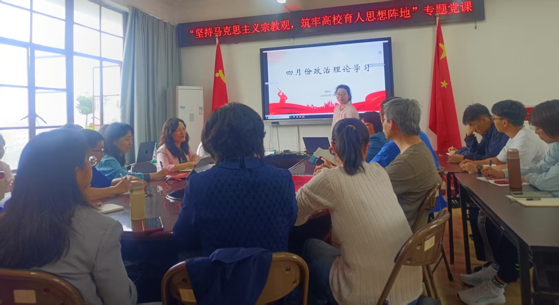 2026年4月15日下午,通识教育学院党支部在系部楼601会议室召开四月份政治理论学习,集中学习“树立和践行正确政绩观”相关内容。本次学习由马克思主义学院党员教师潘昭慧主讲,支部全体党员参加。
