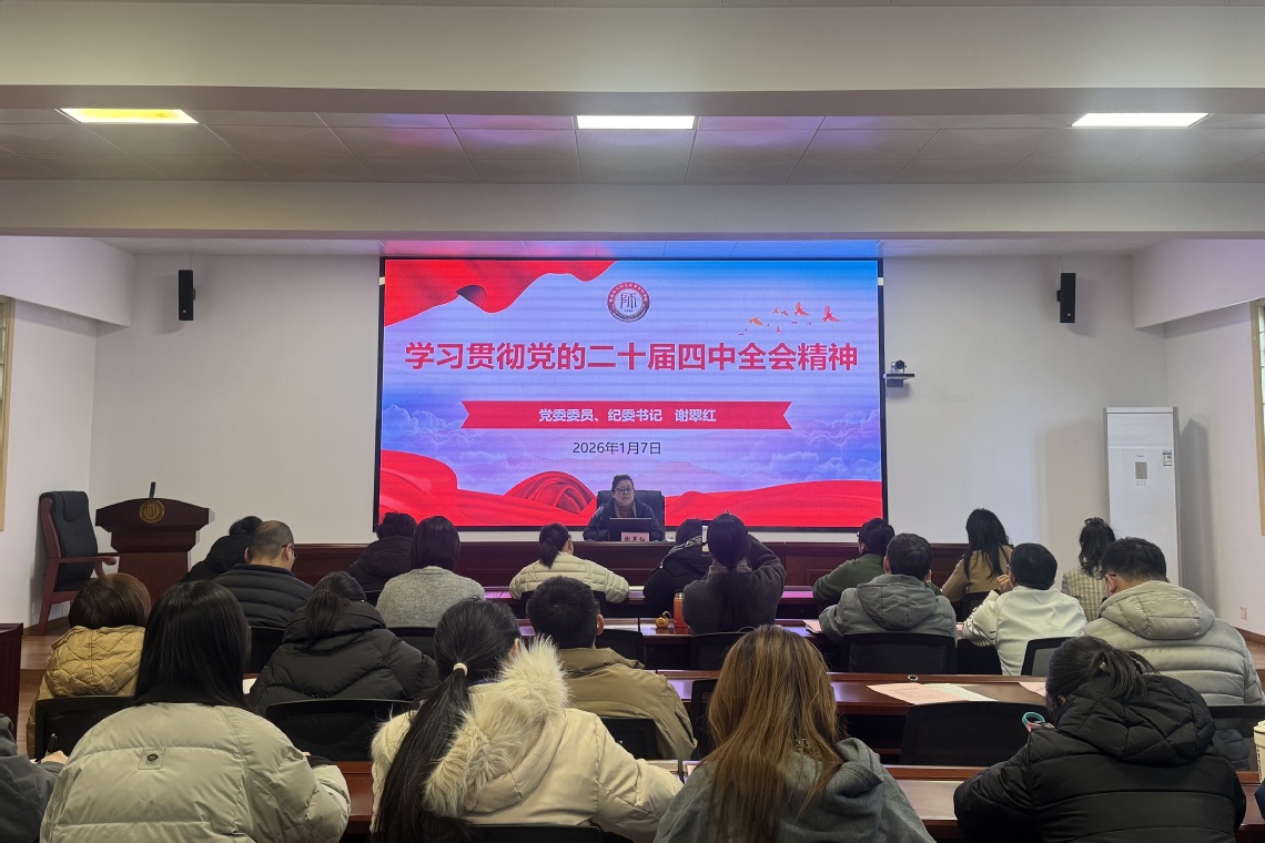 2026年1月7日,校党委委员、纪委书记谢翠红在行政办公楼114多功能厅为基层党组织纪检委员和纪委办公室全体干部宣讲党的二十届四中全会精神。