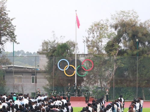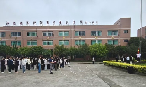 早上7时30分,升旗仪式正式开始。伴随着庄严雄壮的国歌,鲜艳的五星红旗冉冉升起,全体师生肃立行注目礼,齐声高唱《中华人民共和国国歌》。