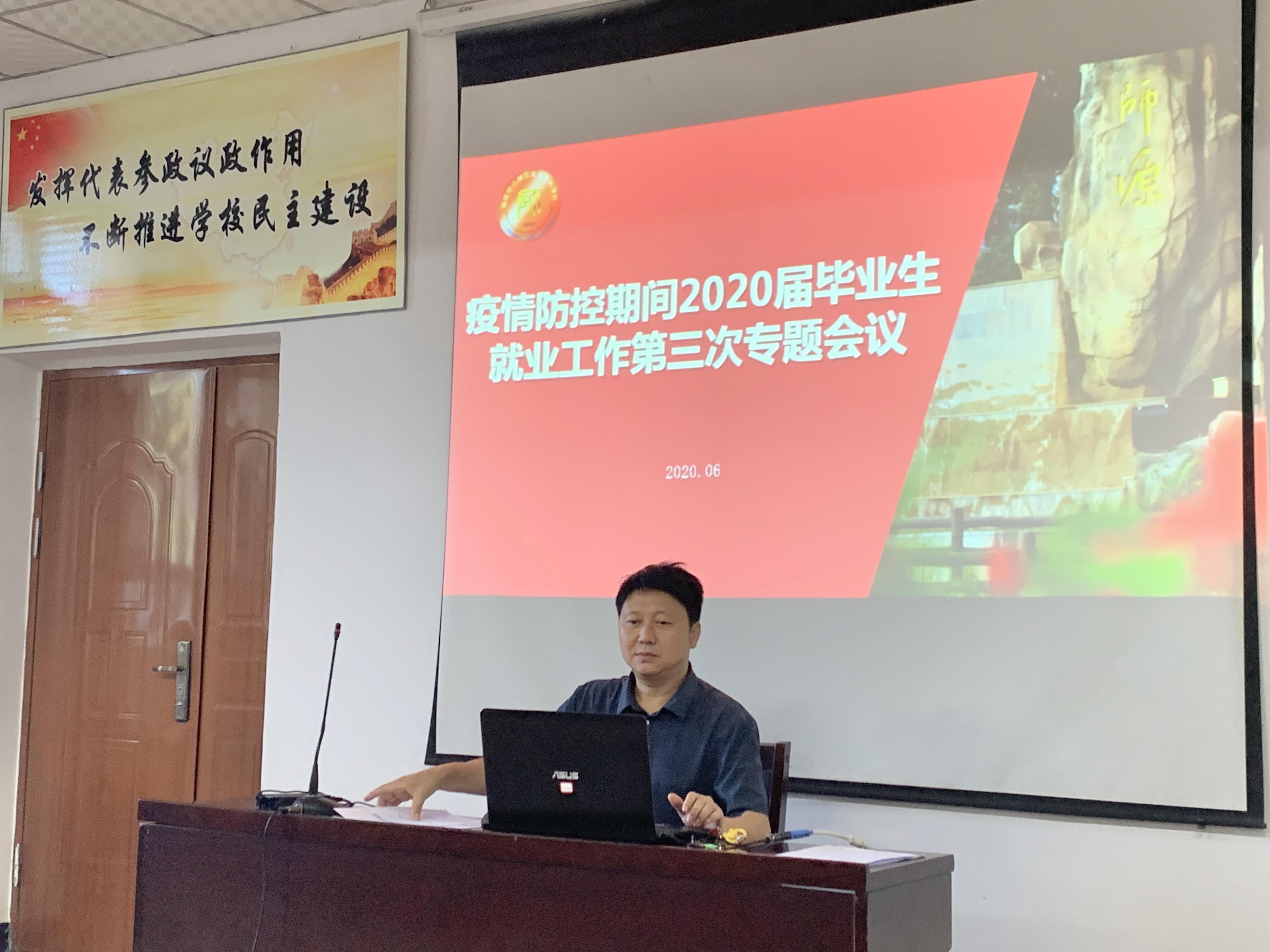 6月12日下午3:30点,我校召开了疫情防控期间2020届毕业生就业工作第三次专题会议。陈峰校长,副校长郑晓生、学工部姜琪副部长、招生就业办全体工作人员、各系副书记、就业辅导员、毕业班辅导员参加了会议。会议由招生就业办陈秉龙主任主持。