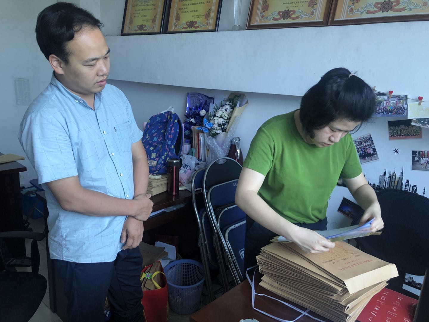 为推进我校2020年毕业生档案整理工作进度,加强对毕业生档案的管理,7月13日和14日,招生就业办工作人员对学前教育系、外语系和艺术系的2020年毕业生档案进行了实地抽查。