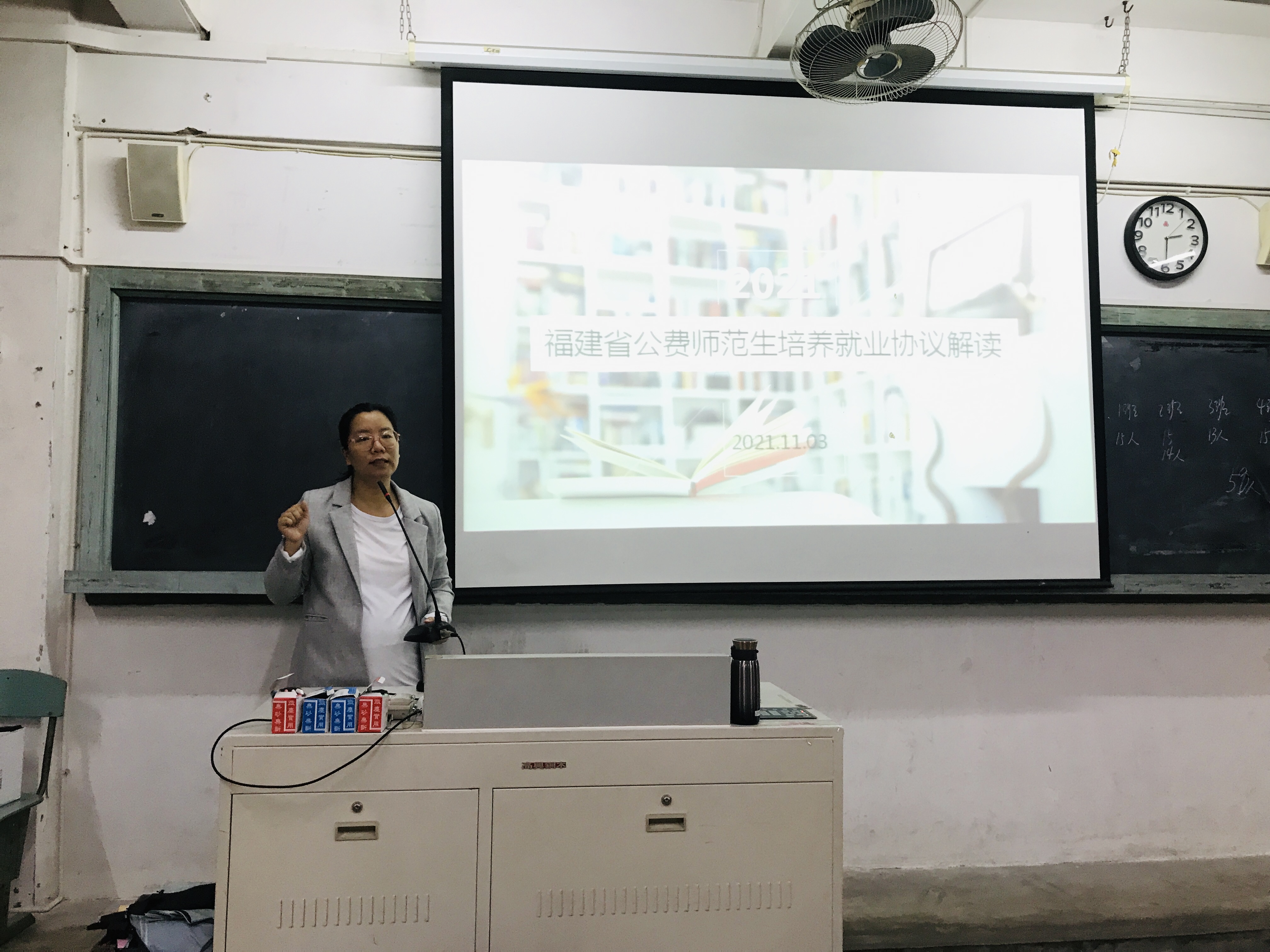 为进一步深入开展“我为师生办实事”活动,加强公费师范生的契约精神、责任意识,为全体公费师范生顺利毕业、就业打下基础,勉励公费师范生早日成为优秀的人民教师。11月3日下午,我校创新创业与实训中心在教学a楼305教室召开了“2021年福建省公费师范生培养就业协议解读”专题会,2021级全体公费师范生参加此次专题会。