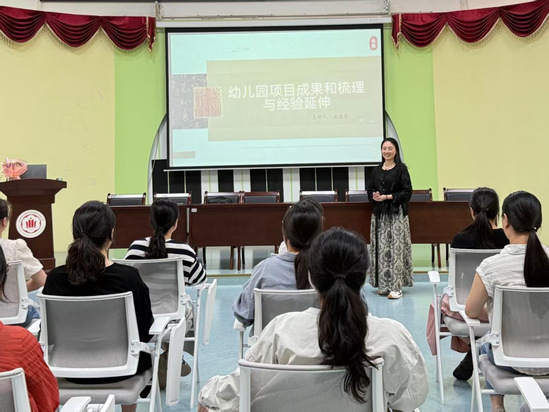 在专题分享环节,艺术教育专家颜铭锋教授围绕“非遗项目式学习在幼儿园的传承方式”展开深入探讨。她结合幼儿认知特点与非遗文化特性,提出“生活化渗透、游戏化探索、艺术化表达”三大传承路径,建议将闽南剪纸、木偶戏等非遗文化元素融入幼儿日常活动,通过“寻找身边非遗”“非遗小剧场”等项目主题,让幼儿在动手操作与情境体验中感知文化魅力;并强调要避免非遗传承的形式化,需以项目式学习为纽带,让幼儿从“被动观看”转变为“主动探究”,围绕“闽南童谣创编”设计驱动性问题,引导幼儿收集童谣、改编歌词、编排表演,在项目流程中理解非遗内涵。