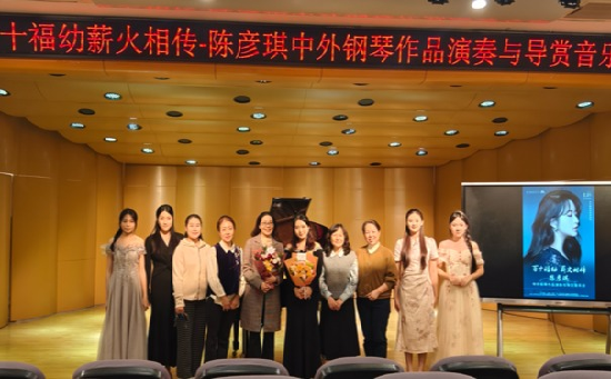 11月18日晚上19点,“百十福幼 薪火相传—陈彦琪中外钢琴作品演奏与导赏音乐会”在音乐厅举行。本次音乐会由学校科研处主办、艺术教育学院音乐舞蹈教研室承办,是福建幼儿师范高等专科学校办学110周年教学成果汇报系列活动之一,是学校开展美育课程思政的一次创新实践,也是艺术教育学院教工第一党支部(全国党建工作样板支部培育创建单位)、“艺术教育专业群”省级职业院校教师教学创新团队、王萍萍教授工作团队的党建及教学成果展示。莅临音乐会现场的有马克思主义学院院长伊文婷教授、艺术教育学院院长王萍萍教授,副院长颜艳副教授,音乐与舞蹈研室王政副教授、邓晓红老师等。