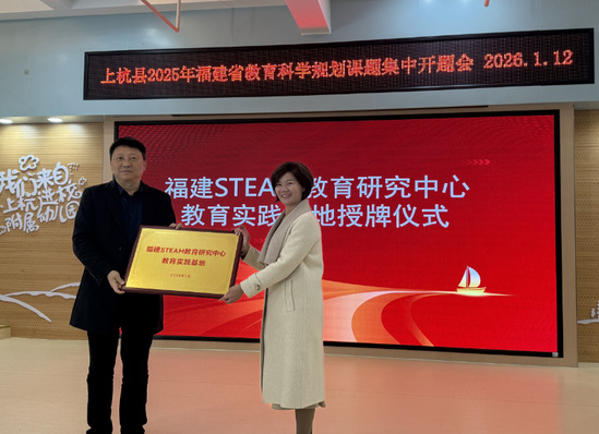 2026年1月12日,福建省教育科学规划课题《基于STEAM项目式学习的幼儿创新意识培养的实践研究》开题论证会在上杭县教师进修学校附属幼儿园顺利召开。作为我省STEAM教育研究与推广的核心枢纽,福建STEAM教育研究中心主任陈秉龙应邀以论证指导专家身份出席会议,并代表中心为该园授予“福建STEAM教育研究中心教育实践基地”牌匾,标志着中心在学前阶段STEAM教育实践落地与创新人才启蒙培养领域的又一重要布局。上杭县教师进修学校相关领导、课题组成员及幼儿园骨干教师共同参与本次盛会。