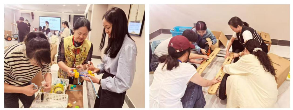 工作坊以“有准备的环境——激发幼儿科学制作中的内驱力、反思力与创造力”主题,呼应本次幼教分会场“自主、对话、创造:面向未来的儿童与教师发展”的主题。作为一种小规模、互动性强、以实践为核心的学术交流活动,工作坊强调参与者的积极参与,通过小组讨论、动手操作、案例分析等形式,共同探索并解决某一具体问题,既传递前沿研究成果,又注重将成果转化为可落地的教育实践。团队聚焦当前幼儿科学探究学习环境创设中的痛点难点,精心设计了“理论解读—分组体验—互动研讨—反思总结”的沉浸式活动流程,创设了四大类材料体系,让参会教师在做中学,于做中研,从做中思,重构教师的环境材料观,促进教师以“有准备的环境”支持儿童内驱力、反思力与创造力培育。
