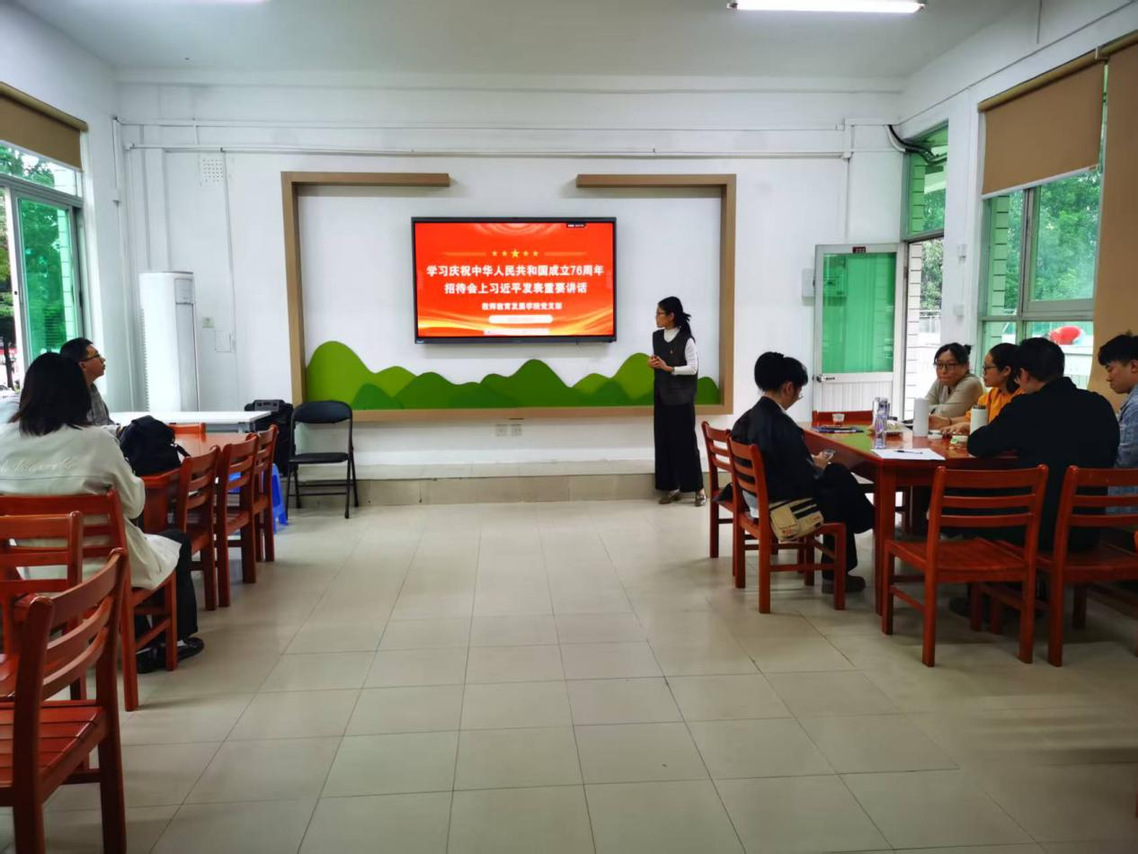 首先许冰灵同志传达了习近平总书记在庆祝中华人民共和国成立76周年招待会上的重要讲话精神。她指出,习近平总书记的重要讲话深刻总结了新中国成立以来党领导人民取得的伟大成就,强调了实现中华民族伟大复兴的艰巨任务和光明前景。她强调,教师教育发展学院党支部全体党员要深刻领会习近平总书记重要讲话精神,紧密团结在党中央周围,锐意进取、埋头苦干,为奋力谱写中国式现代化更加绚丽的篇章贡献教育力量。