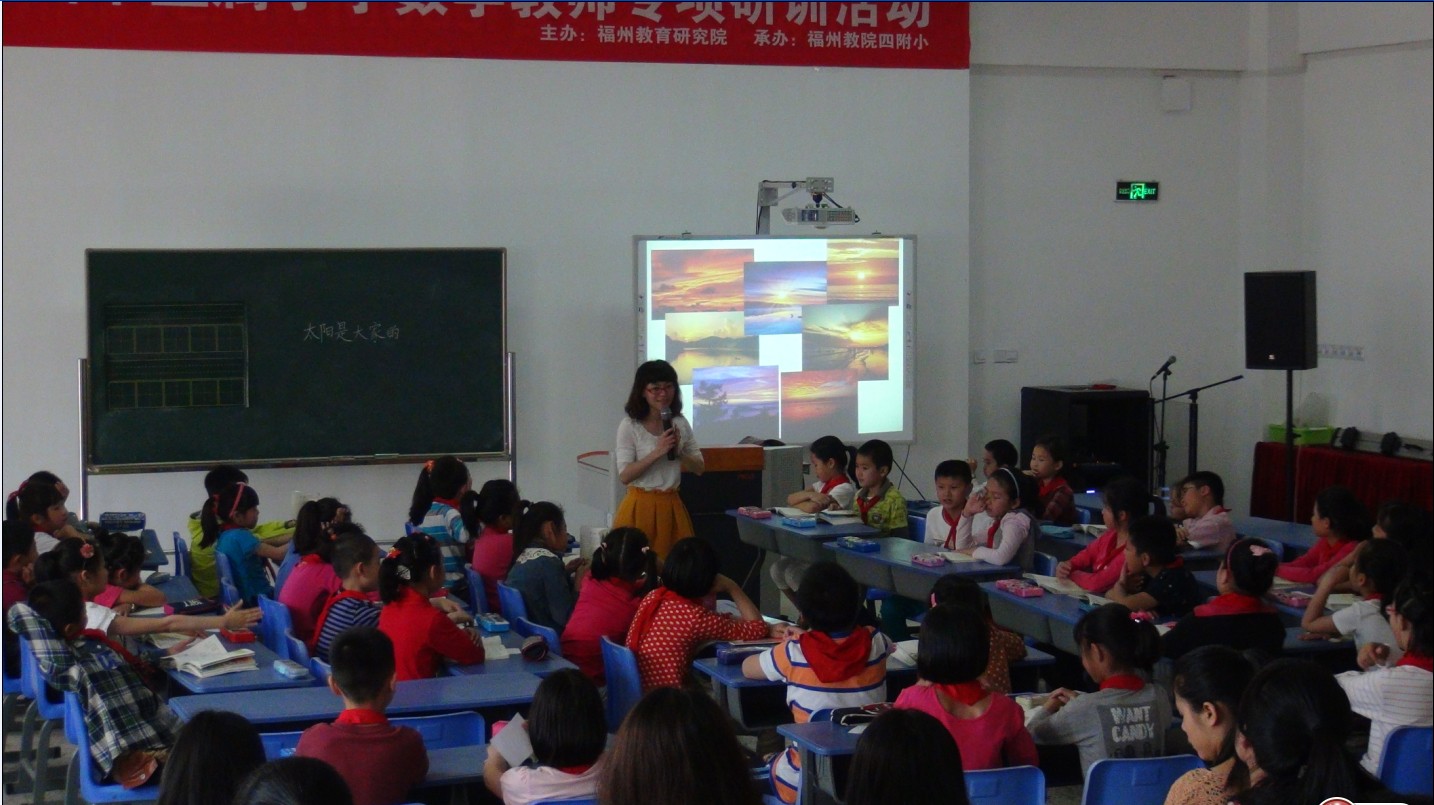 翁秀钦老师则为我们带来了儿童诗《太阳是大家的》的教学。她采用"阅读、感受、分析、联想、朗读、创作"等学习方式,让学生在语言实践中进行多元的、个性化的情感体验,在情感体验中进行语言文字的训练,让学生感受到诗歌特有的韵律美的同时自然地抒发出对太阳的热爱,对世界和平的渴望,激发学生学习语文和创作诗歌的欲望。