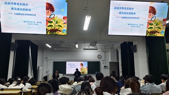 为落实新课标理念,全面提升小学科学教育专业师范生的专业素养,人文科学学院于12月4日晚在教学A楼103开展“在科学教育实践中遇见成长的快乐”主题名师零距离讲座,特邀福州市麦顶小学校长、福建省中小学名校长、福建省高层次人才、福建省学科带头人林兆星(正高级教师、特级教师)分享科学教育实践与教师成长的真谛,文理教研室喻秀莲、陈树贞、林英三位老师以及2024、2025级小学科学教育专业学生聆听了本次讲座。