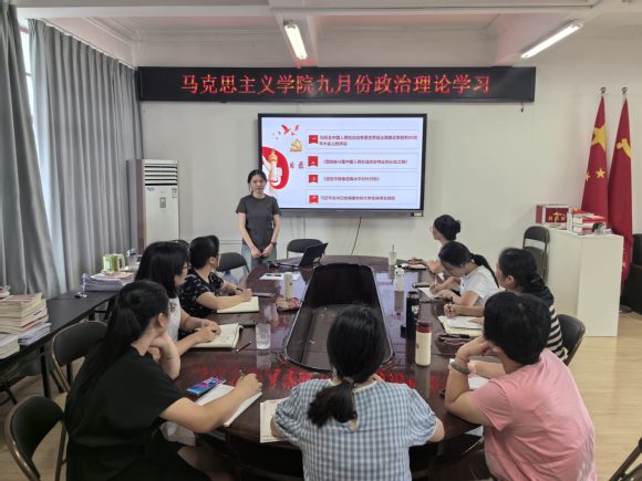 2025年9月24日下午,马克思主义学院于学院会议室开展九月政治理论学习。此次学习由党员教师方春兰领学。