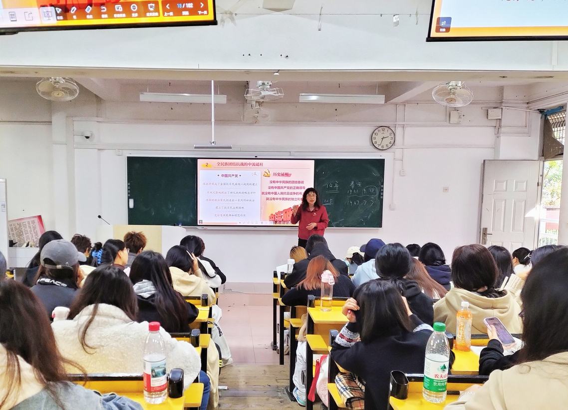 2025年12月5日下午,校党委委员、副校长陈凤玉走进教学A楼204为我校艺术教育学院美术教育专业2511、2512班的同学讲授题为“纪念抗战胜利 坚定民族信念”的形势与政策课。
