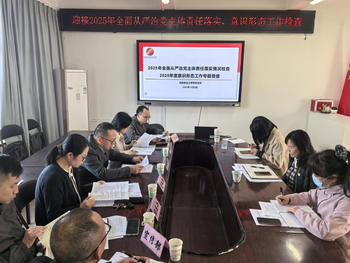 12月4日上午,校党委副书记邹雄伟带领组统部、党政办、宣传部、纪委办和人事处等部门人员莅临马克思主义学院开展2025年度全面从严治党主体责任落实情况专项检查和意识形态工作专题督查工作。