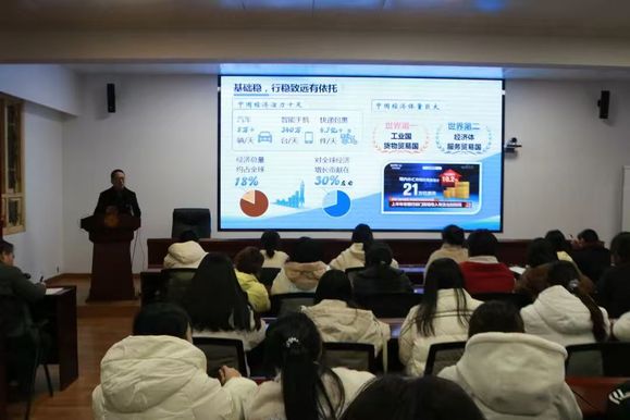 为深入学习贯彻党的二十届四中全会精神,引导青年学生坚定理想信念、厚植爱国情怀,1月5日晚,我校青马班专题思政课在校办114会议室举行。校党委副书记邹雄伟以“学习贯彻党的二十届四中全会精神——正确认识中国经济热点问题”为题,为全体学员讲授专题思政课。
