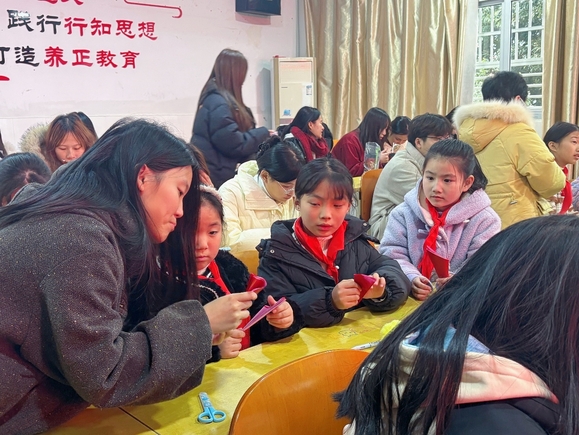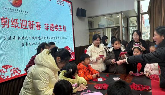 带着从线狮技艺中领悟的“牵引”智慧,实践队最后一站走进闽东第一红军小学(霍童中心小学),开展“剪纸迎新春,非遗焕生机”文化志愿服务活动。队员们化身“小老师”,耐心引导孩子们创作寓意吉祥的窗花。这一过程,正是“师者,所以传道授业解惑也”的现场实践。师范生们在传授技艺的同时,也在孩子们心中播撒下热爱传统文化、向往真善美的种子,亲身践行了“以文化人、以美育人”的师德追求,完成了从文化汲取者到文化传播者、教育启蒙者的角色升华。