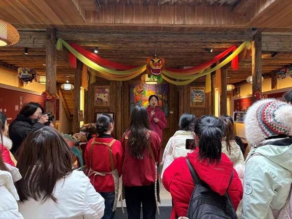 在研习所内,队员们近距离观摩了线狮从竹木构架到彩绘成型的全过程,聆听省级非遗代表性传承人陈新杰讲解制作技艺。每一根线的排布、每一个关节的联动,都关乎最终表演的成败,这恰如师范教育中每一处细节的打磨、每一次言传身教的累积。同学们亲手尝试制作线狮主题文创、拓印传统纹样,在一裁一贴、一提一按的细微之处,不仅体会到非遗技艺的精密,更感悟到“师范”二字所要求的严谨、耐心与执着。线狮传承靠的是手艺的“线”,教师育人靠的是品德的“线”,二者在追求极致、传递美好的精神内核上高度契合。