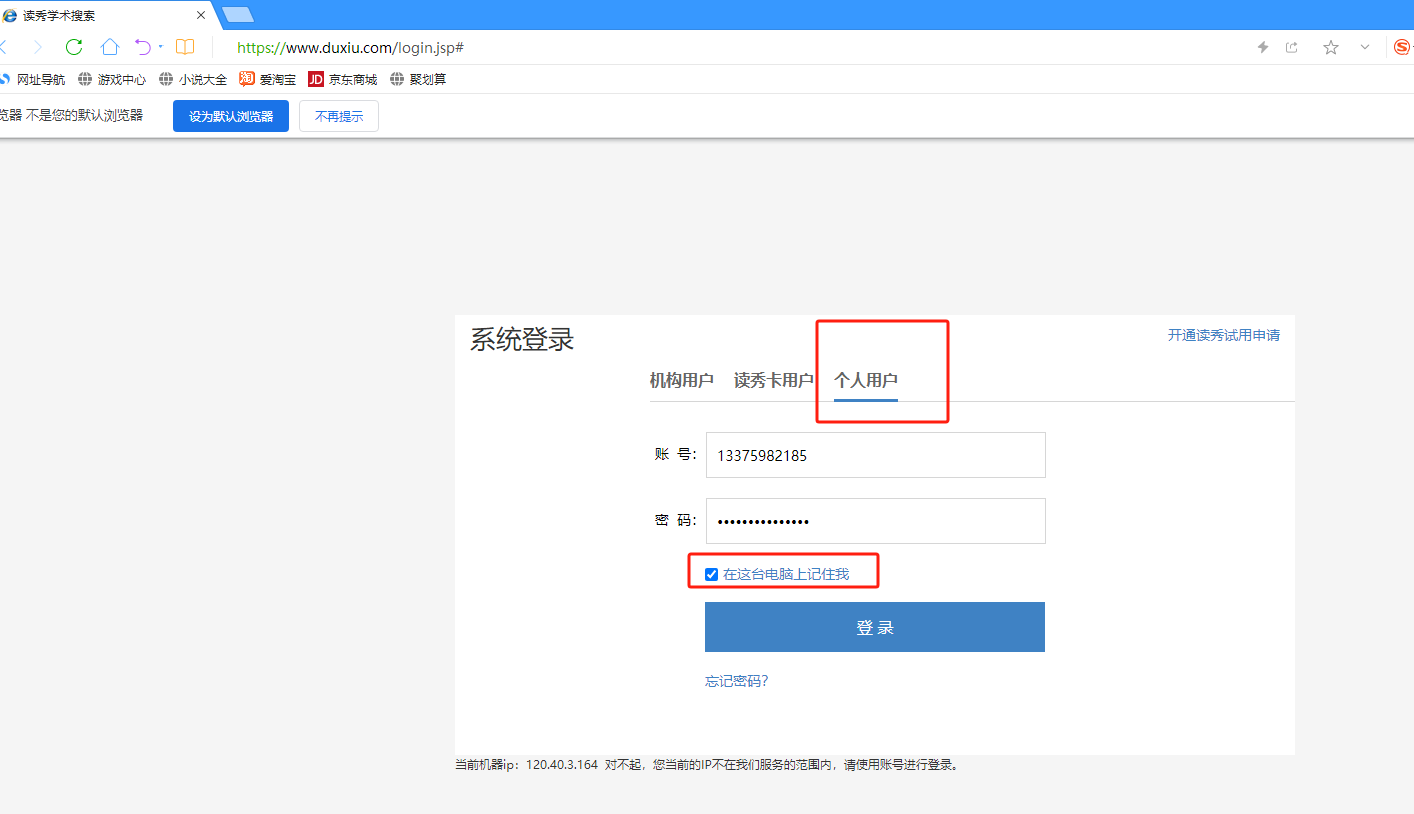 选择“个人用户”登录(可勾选“在这台电脑记住我”)