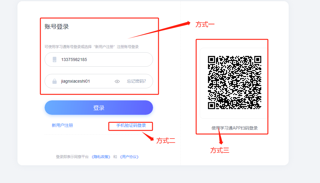 登录方式:(1)使用校内注册的手机号账号密码,输入后点击“登录”