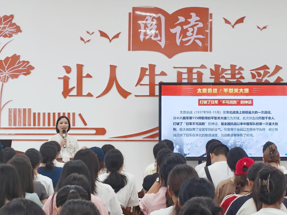 截至9月27日,“书香同行・阅读青春”主题活动圆满落幕。活动期间,全校师生通过观展览、听讲座、谈感悟,在书香与历史的交融中深化了对伟大抗战精神的理解。图书馆馆长程英表示,此次活动既是支部立项的重要实践,也是红色教育的生动课堂,未来将继续创新形式、丰富内容,让红色文化融入校园生活,引导更多师生从历史中汲取力量,为实现中华民族伟大复兴的中国梦贡献青春智慧。