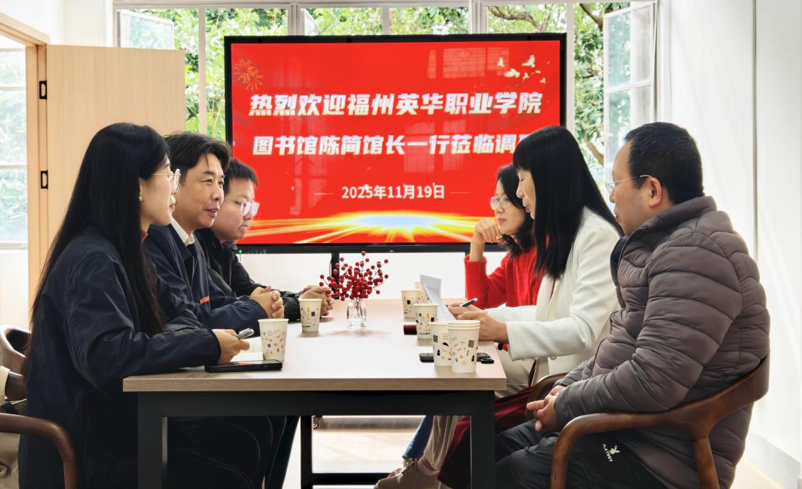 11月19日上午,福州英华职业学院图书馆馆长陈简一行三人莅临我校图书馆调研交流。图书馆馆长程英率各部室负责人热情接待。