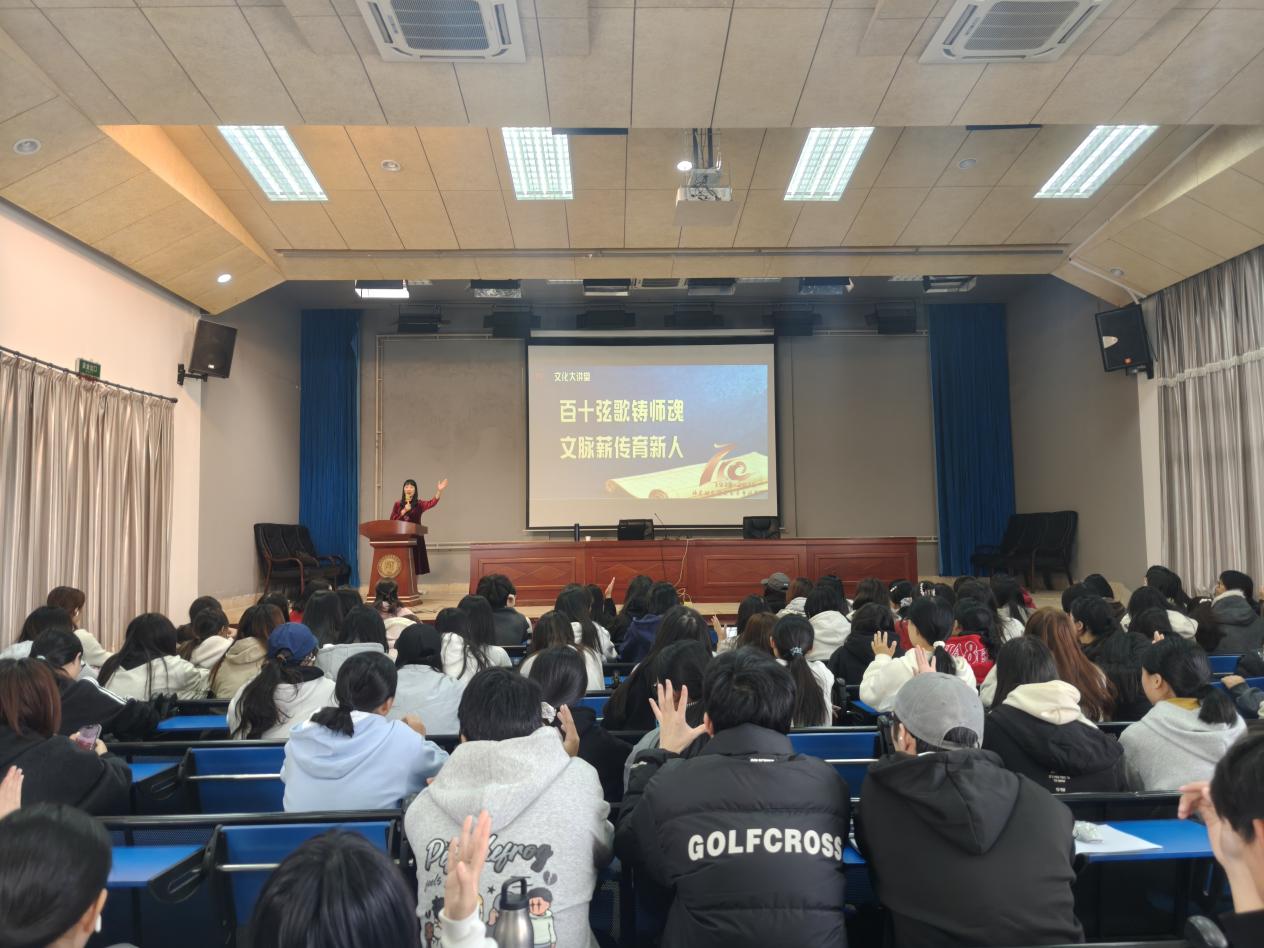 为迎接办学110周年,追溯百年学府文脉、传承并弘扬崇高师者精神,图书馆联合校团委策划推出“百十弦歌铸师魂 文脉薪传育新人”文化大讲堂系列讲座。11月19日下午,系列讲座第二讲在图书馆学术报告厅顺利举行。本次讲座特邀我校党政办公室综合科科长、省小学语文学科带头人培养对象、省家庭教育研究会理事薛莲副教授,为青年学子带来题为《弘扬闽派教育家精神的时代价值》专题讲座,带领师生回溯闽派教育千年文脉,感悟中华优秀传统文化浸润下的教育初心与时代担当。