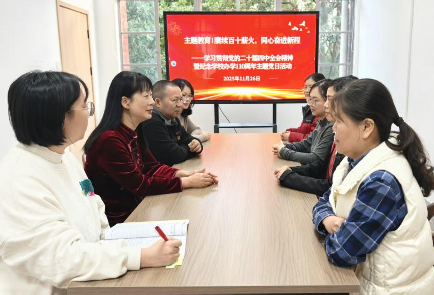 理论学习环节,党支部书记领学全会精神,重点解读教育、文化领域战略部署。党员们结合校史传承,围绕“如何将全会精神转化为服务育人实践” 研讨交流,一致表示将以创新突破助力学校高质量发展。