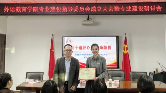 百十蕴匠心,专业启新程。为进一步推动产教融合,汇聚中高职院校与行业企业专家的力量,协同提升人才培养质量,增强人才培养与岗位需求、行业发展的契合度,外语教育学院于11月23日下午在金山校区隆重举行专业建设指导委员会成立大会暨专业建设研讨会。学校党委副书记邹雄伟研究员出席并致辞,学院领导班子、骨干教师及校内外委员齐聚一堂,共绘专业发展新蓝图。会议由外语教育学院院长陈文华教授主持。