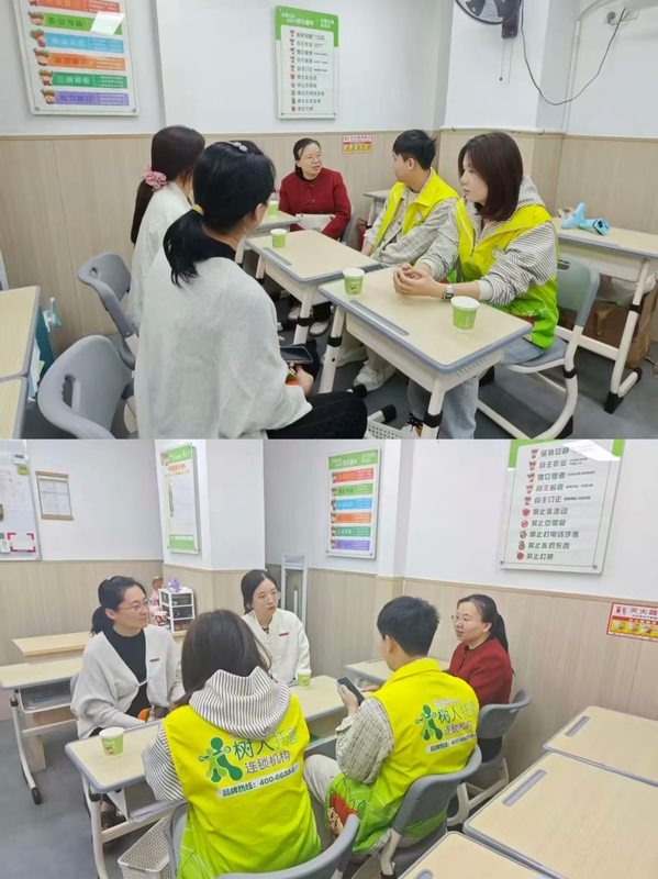 走访中,学院老师与托管机构负责人深入交流,详细询问余丹婷同学实习期间的工作表现、适应情况、专业技能应用及思想动态。机构负责人对余丹婷踏实认真的工作态度、良好的专业素养和快速融入团队的能力给予充分肯定,称赞其在学生辅导、课程协助及日常管理等方面展现出较强潜力与责任心。此外,双方还就学校落实“双减”政策、实现课堂增效与课后分层服务的相关做法及成效进行了沟通。