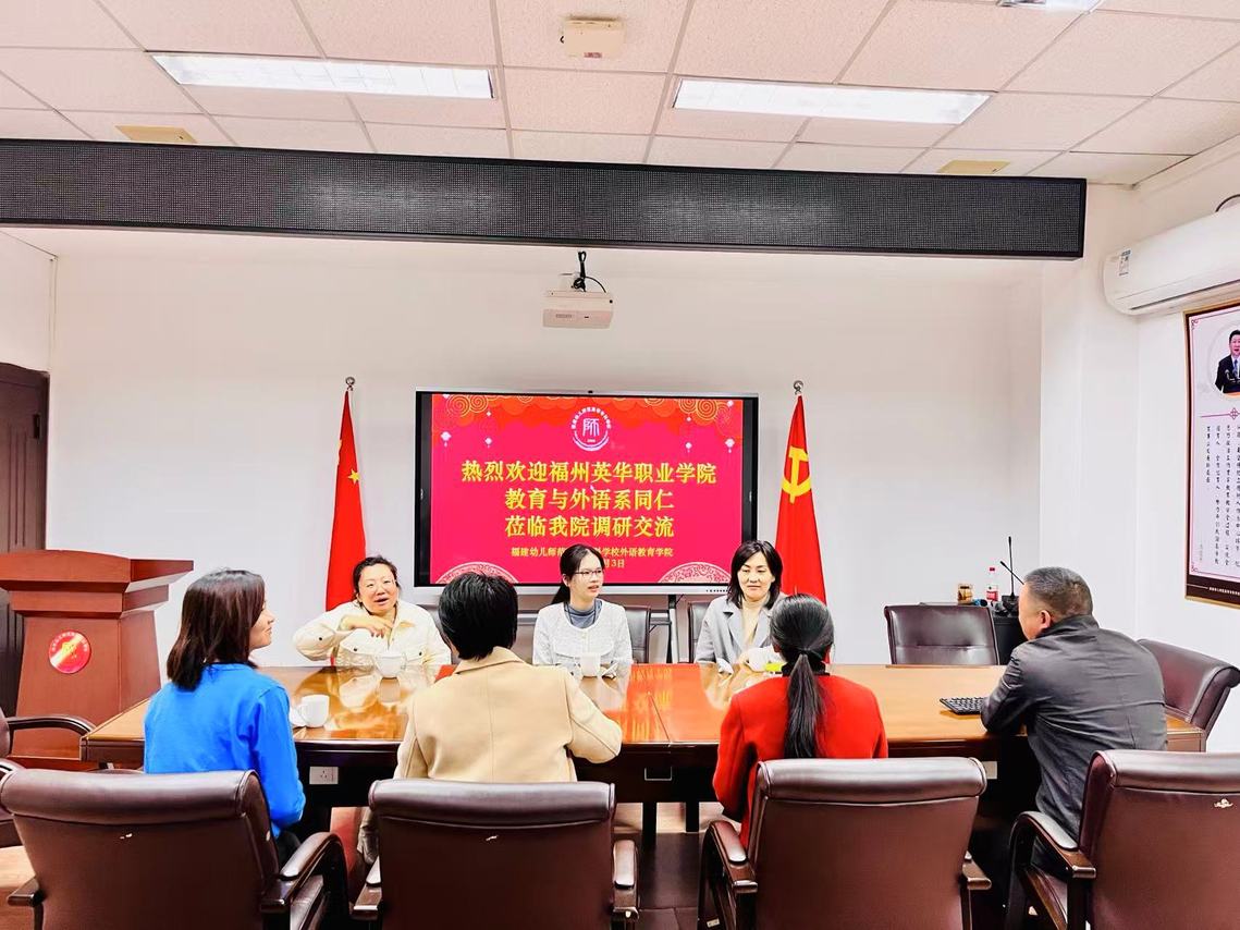 为深化校际交流、共促发展,近日,福州英华职业学院教育与外语系应用英语教研室主任胡冬菊老师率队莅临我院,开展专题调研与交流活动。我院应用英语教研室主任陈雪晶、办公室主任毛行堂及相关教师热情接待,并围绕应用英语专业建设、课程改革等议题组织座谈研讨与实地参观。