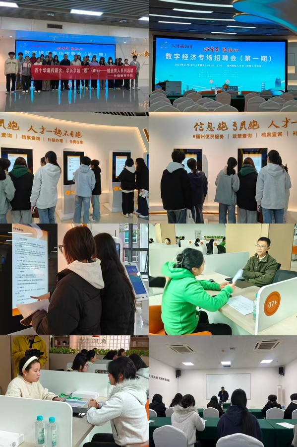 2025年11月28日,学院研学旅行管理与服务专业学生走进福州数智人才港“数字经济专场招聘会(第一期)”。同学们在自助便民服务区查询福州人才政策,了解求职住宿、补贴办理等细则;在招聘现场与企业零距离沟通,咨询岗位要求、薪资待遇等问题,沉浸式体验招聘全流程;还参与了元萝卜象棋机器人互动,激发对科技应用的思考。