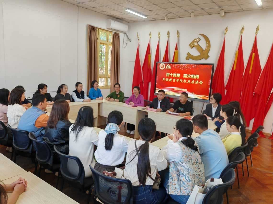校友座谈会上,外语教育学院院长陈文华在致辞中动情说道:“110年风雨兼程,母校的每一步成长都离不开校友们的牵挂与支持。你们走出校园后,在各行各业践行‘学高为师,身正为范’的校训,这正是福幼精神最生动的体现。母校永远是你们的坚强后盾,也期待与各位校友继续携手,把个人发展与学院进步、国家需要紧密相连,让百十薪火在传承中更加炽热。”话音刚落,现场响起热烈掌声。校友们纷纷感念母校培养与学院的贴心服务。多位校友分享着校园生活的点滴与毕业后的奋斗历程,泪光与相机闪光交织,成为座谈会上最动人的风景。