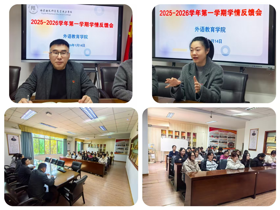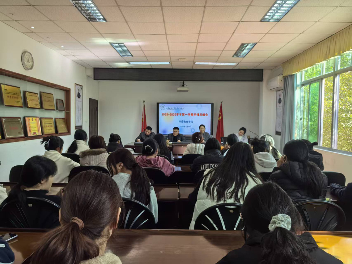 1月14日中午,外语教育学院2025-2026学年第一学期学情反馈会在金山会议室召开。学院党总支王标书记、院长陈文华教授、办公室毛行堂主任、二级教学督导张小莉老师及各班级学生代表齐聚一堂,围绕学业进步与生活保障,共话成长发展。